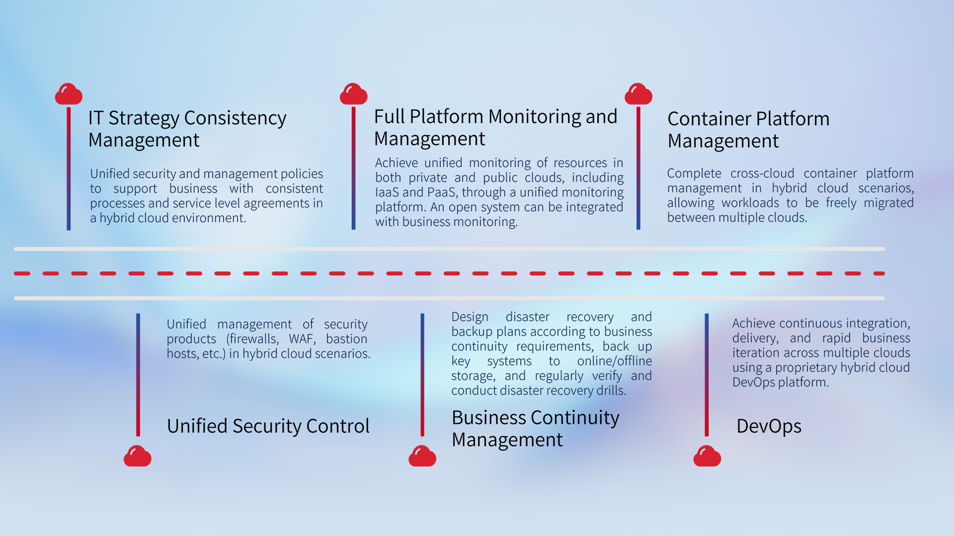 We standardize business systems' applications and data according to cloud platform specifications, matching customer security and application requirements to achieve cloud management.